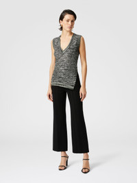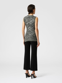 An ode to Missoni's versatility and minimalist elegance, this sleeveless top combines soft slub knit with a textured straight chevron and purl finish. The V-neck defines the silhouette, while the sequins give a discreet shine that illuminates the garment with sophisticated refinement. MORE DETAILS - Palazzo trousers - Slub sweater - Chevron Processing - Sequin application Composition: EXTERNAL:52%Rayon, 25%Polyamide, 19%Polyester, 3%Metal Fiber, 1%Elastane Care instructions: Dry cleaning in tetrachloroethene - mild process ; Ironing maximum temperature 110°C - without steam ; Wash in net bag ; Dry flat ; Dry inside out ; Do not tumble dry ; Do not wash ; Do not bleach Made in: Italy Product ID DS25SK0VBK045BS614L