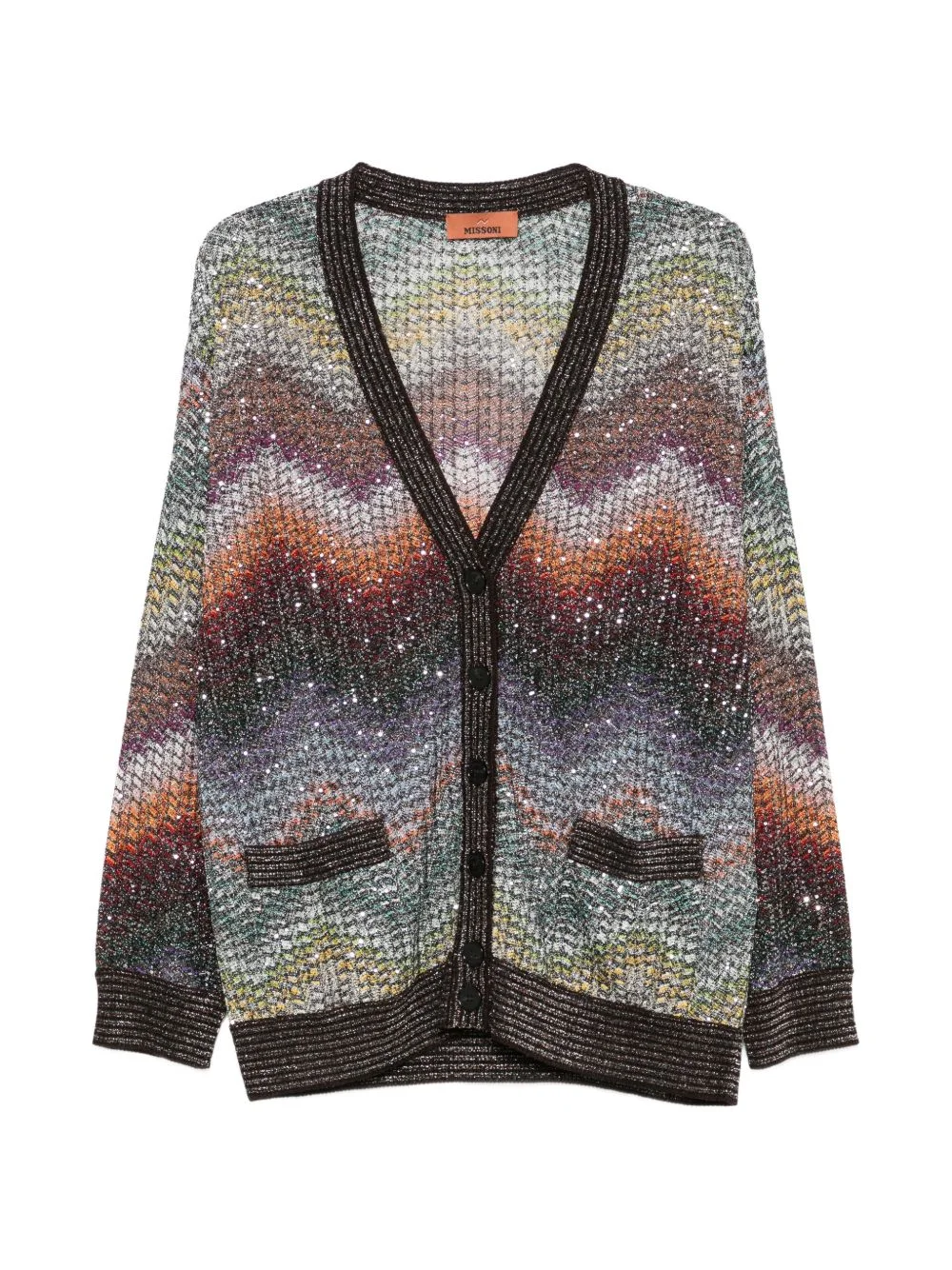 sequinned cardigan Highlights - Brown - V-neck - Front button fastening - Long sleeves - The item you receive may differ slightly from the item photographed. this is due to the artisanal nature with which all missoni products are constructed. Made In Italy Composition Viscose 69%, Metallised Fibres 16%, Polyamide 15% Washing instructions Read Manufacturer Guidelines