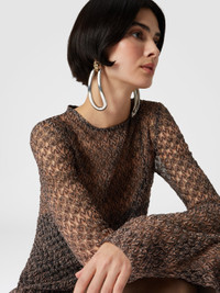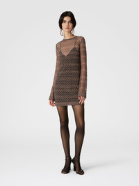 The see-through crewneck mini-dress, with matching petticoat, takes on a sumptuous bearing thanks to the precious lace-motif raschel workmanship, illuminated by the glow of lame thread. For a garment that is the quintessence of luxury in a Missoni key. MORE DETAILS - Crew-neck mini-dress - Slip - Raschel Processing - Lame lace motif Composition: EXTERNAL:52%Metal Fiber, 48%Polyamide Care instructions: Dry cleaning in tetrachloroethene - mild process ; Wash max 30°C - Mild process ; Ironing maximum temperature 110°C - without steam ; Do not tumble dry ; Dry flat ; Do not iron ; Do not wash ; Steam iron only ; Do not bleach Made in: Italy Product ID DS24WG28BR00XCSM9EQ