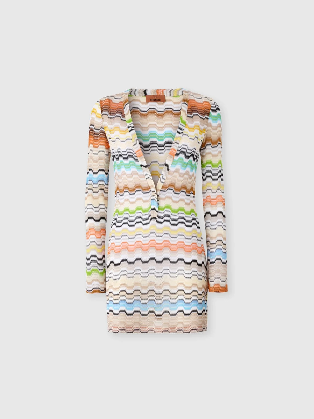 A women’s short cover-up with long sleeves and deep V-neckline, crafted in raschel knit with greek motif in pure viscose. The fluid line follows movement, creating a luminous and harmonious beachwear piece. MORE DETAILS - Women’s short cover-up - Long sleeves and deep V-neckline - Raschel knit - Greek motif - 100% viscose Composition: EXTERNAL:100%Rayon Care instructions: Dry cleaning in tetrachloroethene - mild process ; Ironing maximum temperature 110°C - without steam ; Do not tumble dry ; Do not wash ; Do not bleach Made in: Italy Product ID MS26SQ26BR015ESMSNP