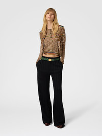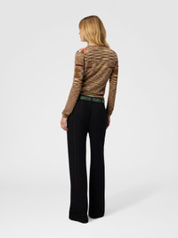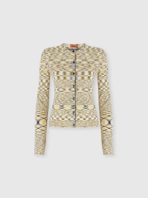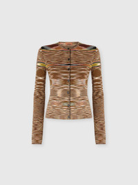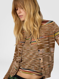 Short crew-neck buttoned cardigan for women, made of slubbed smooth wool blend knit. The compact design and unique knit texture give the garment a distinctive character, ideal for adding a touch of informal elegance to any outfit. MORE DETAILS - Short crew neck cardigan - Flame plain knit - Wool blend Composition: EXTERNAL:97%Wool, 2%Polyamide, 1%Elastane Care instructions: Hand wash ; Dry cleaning in tetrachloroethene - mild process ; Ironing maximum temperature 110°C - without steam ; Wash inside out ; COOL HAND WASH ; Dry flat ; Do not tumble dry ; Iron with a cloth between ; Do not bleach Made in: Romania Product ID DS25WM0JBK01CCFM13W