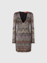 This mini dress with deep V-neck and long sleeves combines elegance with bold character. Made with the prestigious Caperdoni loom, the zigzag-patterned fabric is enhanced with lame threads and gradient sequins, producing a captivating interplay of light and shadow. The short, flared silhouette adds freshness and modernity, with a sparkling, refined finish. MORE DETAILS - Mini dress - V-neckline - Caperdoni loom knit - Zig zag motif - Lurex threads and sequins - Viscose blend Composition: EXTERNAL:48%Rayon, 46%Polyamide, 6%Metal Fiber; LINING : 82%Polyester, 18%Elastane Care instructions: Dry cleaning in tetrachloroethene - mild process ; Dry flat ; Steam iron only ; Do not tumble dry ; Do not wash ; Do not iron ; Do not bleach Made in: Italy Product ID DS25WG1NBC005GS01HU