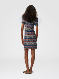 This half-sleeve short dress for women offers a refined reinterpretation of Missoni’s signature zigzag pattern through raschel lace knit. Made from a fine viscose and wool blend, it envelops the silhouette with elegance, combining textured richness and visual lightness. MORE DETAILS - Short dress with half sleeves - Raschel knit with lace-effect - Viscose and wool blend - Lurex threads Composition: EXTERNAL:66%Rayon, 30%Wool, 4%Metal Fiber; LINING : 82%Polyester, 18%Elastane Care instructions: Dry cleaning in tetrachloroethene - mild process ; Wash max 30°C - Very mild process ; Steam iron only ; Do not tumble dry ; Dry flat ; Do not iron ; Do not bleach Made in: Italy Product ID DS25WG1WBR012FSM9R3