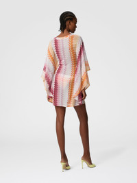 Play with transparencies and metallic reflections in this short cover-up caftan in viscose and lame blend, enriched with the classic zigzag motif. The wide batwing sleeves give a fluid elegance, while the V-neckline and the soft line give lightness and refinement. A garment that embodies the heritage of the maison, bringing the unmistakable sophisticated and timeless aesthetic of Missoni to the beach. MORE DETAILS - Short model kaftan - Viscose and lame blend - Batwing Sleeves - Zig zag pattern Composition: EXTERNAL:90%Rayon, 6%Polyester, 4%Polyamide Care instructions: Ironing maximum temperature 110°C - without steam ; Dry cleaning in tetrachloroethene ; Do not tumble dry ; Do not wash ; Do not bleach Made in: Italy Product ID MS25SQ0NBR00ZYMM00H