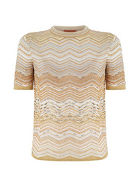 sequin crew-neck T-shirt Highlights - Beige and gold-tone - Chevron pattern - Sequin embellishment - Short sleeves - Round neck Made in Italy Composition Viscose 78%, Metallic Fibre 11%, Polyamide 11% Washing instructions Dry Clean Only