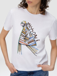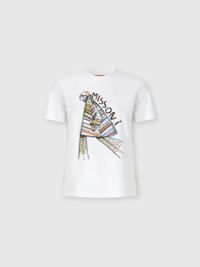 Timeless and versatile, this short-sleeve women’s T-shirt reimagines the basic staple with a distinctive touch. Made from soft jersey, it is enhanced by a graphic front print and decorative embroidery. The Missoni logo is subtly integrated into the design, signing the garment with unmistakable style—perfect for adding character to even the most minimal outfits. MORE DETAILS - Short-sleeved T-shirt - Printed and embroidered logo - 100% cotton Composition: EXTERNAL:100%Cotton Care instructions: Dry cleaning in tetrachloroethene - mild process ; Wash max 30°C - Very mild process ; Wash inside out ; Do not tumble dry ; Ironing maximum temperature 150°C ; Line dry in the shade ; Do not bleach Made in: Italy Product ID DS25WL03BJ00PBS01IJ