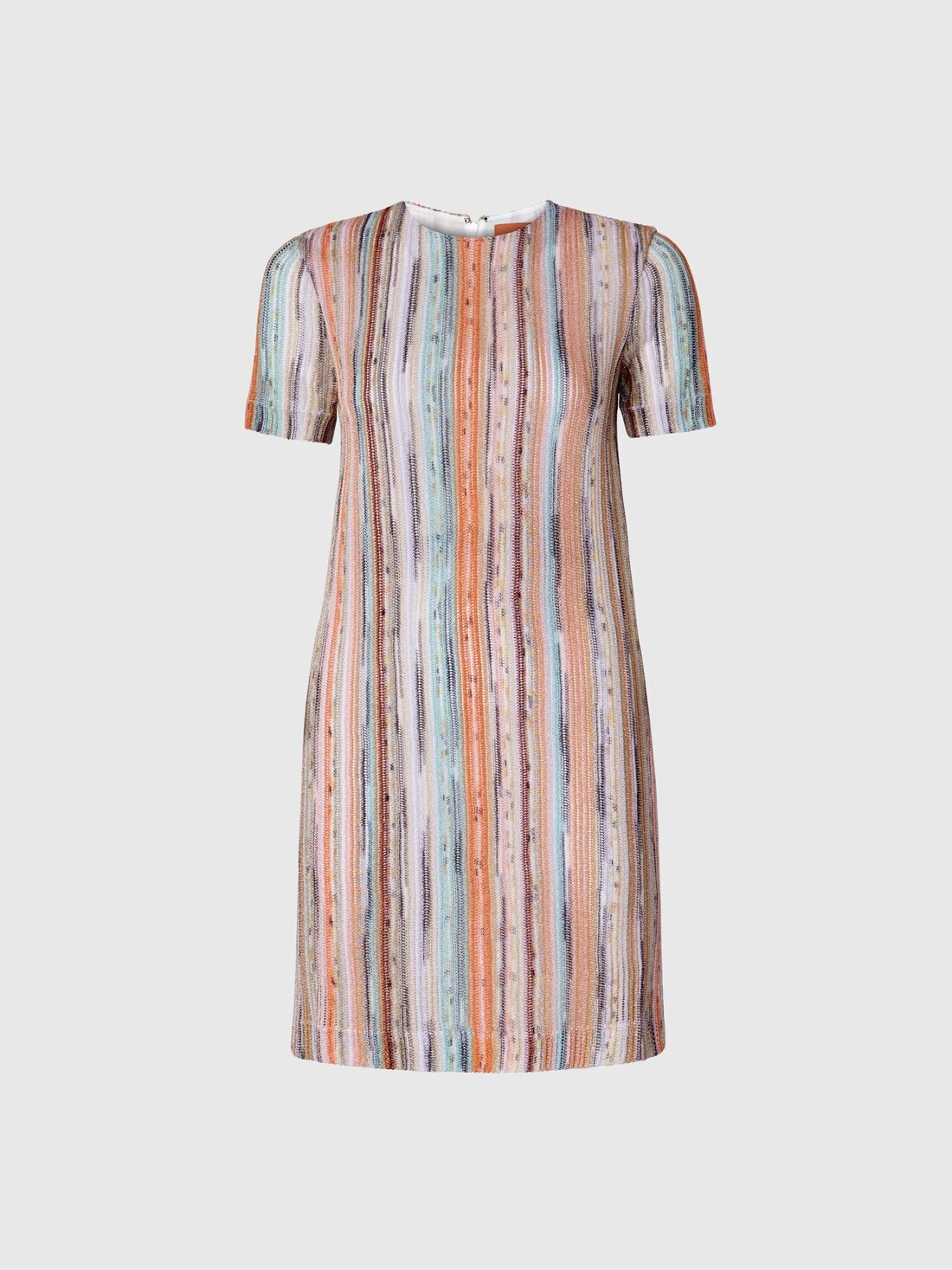Short-sleeved mini-dress in striped lamé slub viscose