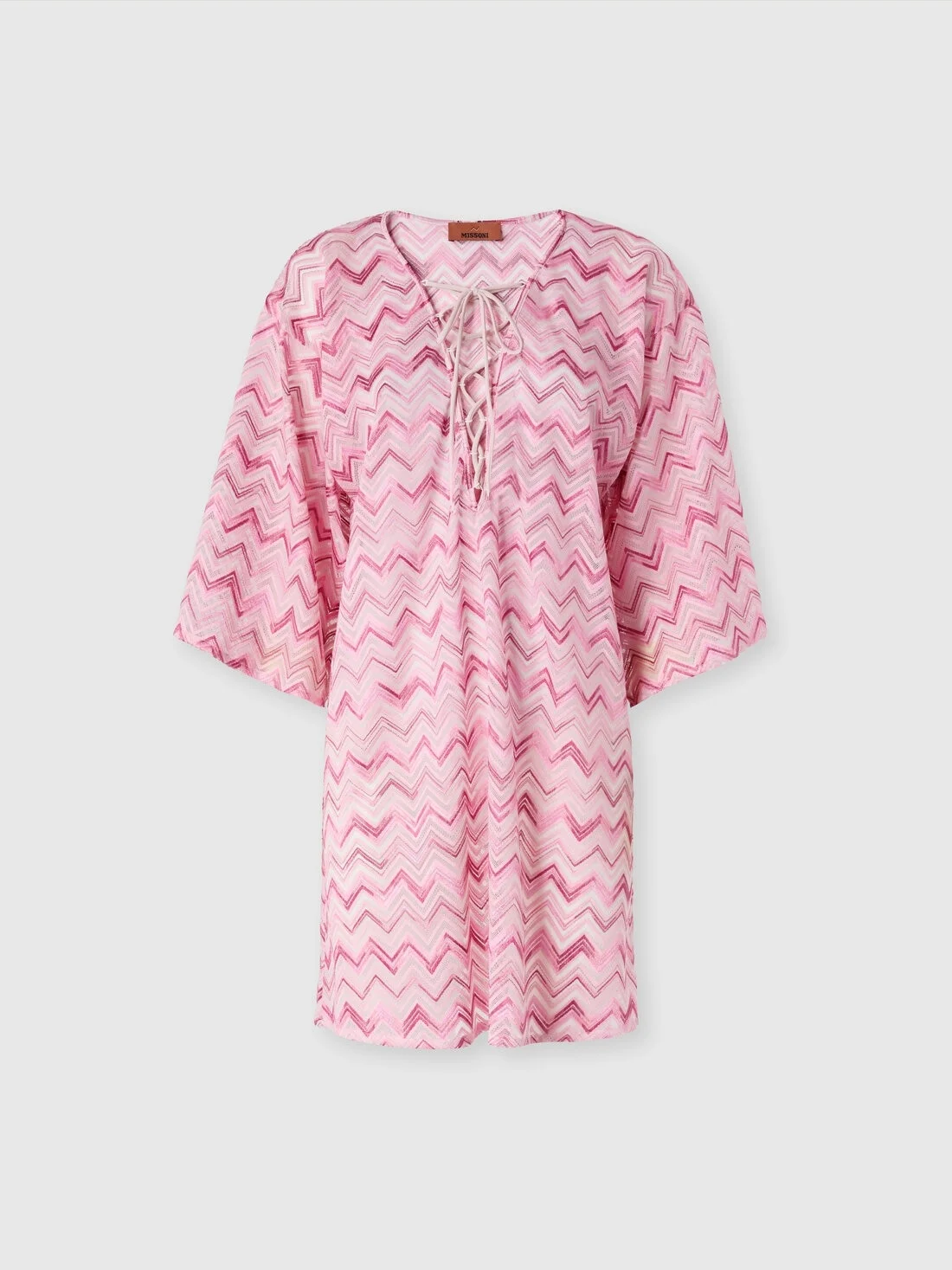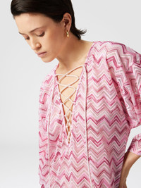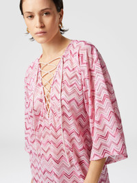 Short viscose-blend tulle kaftan with slub zigzag