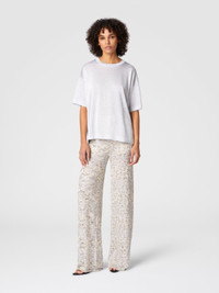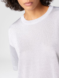 With its oversized silhouette and discreet sheen, this viscose sweater is a perfect example of Missoni's aesthetic language. The workmanship of the fabric, embellished with lame filaments, gives the garment a sophisticated elegance, while maintaining a relaxed and modern look. The maison, once again, enhances the quality of the materials through a minimalist but refined design. MORE DETAILS - Hoodie - Viscose processing - Lame filaments Composition: EXTERNAL:88%Rayon, 12%Metal Fiber Care instructions: Dry cleaning in tetrachloroethene - mild process ; Ironing maximum temperature 110°C - without steam ; Iron inside out ; Dry inside out ; Dry flat ; Do not tumble dry ; Do not wash ; Do not bleach Made in: Romania Product ID DS25SN0HBK045AS01GC