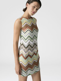 MORE DETAILS - Women's sleeveless mini dress - Caperdoni loom workmanship in chevron pattern - Viscose and cotton blend Composition: EXTERNAL:85%Rayon, 15%Cotton; LINING : 82%Polyester, 18%Elastane Care instructions: Dry cleaning in tetrachloroethene - mild process ; Ironing maximum temperature 110°C - without steam ; Do not tumble dry ; Dry flat ; Do not wash ; Do not bleach Made in: Italy Product ID DS26SG1VBC0062SM9YO