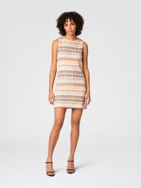 The short cotton-blend dress, featuring an A-line silhouette, features the refined shaved Caperdoni motif, which enhances its light and contemporary structure. The essential line, sleeveless, gives the garment a touch of sober elegance, perfect for those looking for a balanced look between style and modernity. MORE DETAILS - Short sleeveless dress - Cotton Blend - Caperdoni motif Composition: EXTERNAL:60%Cotton, 16%Modacrylic, 14%Polyamide, 10%Polyester; LINING : 100%Polyester Care instructions: Hand wash ; Dry cleaning in tetrachloroethene - mild process ; COOL HAND WASH ; Do not tumble dry ; Dry flat ; Steam iron only ; Do not iron ; Do not bleach Made in: Italy Product ID DS25SG18BC004YS80CT