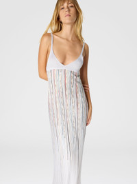 Perfect for special occasions, this long sleeveless women’s dress is crafted from flame-effect viscose lame blend with ribbed workmanship. The structure of the fabric enhances the silhouette, creating a refined play of light and movement that catches the eye. MORE DETAILS - Women's long sleeveless dress - Flame-effect ribbed knit - Viscose and lame blend Composition: EXTERNAL:88%Rayon, 8%Polyester, 4%Metal Fiber; LINING : 82%Polyester, 18%Elastane Care instructions: Dry cleaning in tetrachloroethene - mild process ; Ironing maximum temperature 110°C - without steam ; Do not tumble dry ; Dry flat ; Do not wash ; Do not bleach Made in: Italy Product ID DS26SG16BK01GZSM9ZZ