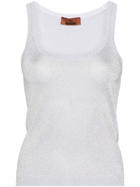 sleeveless lurex tank top Highlights - Light grey - Metallic threading - Vanise knit - Lurex detailing - Scoop neck - Sleeveless - Ribbed cuffs and hem - The item you receive may differ slightly from the item photographed. this is due to the artisanal nature with which all missoni products are constructed. Imported Composition Viscose 70%, Metallic Fibre 30% SIZE & FIT Model measurements Height 5 ft 11 in(1.8 m) Bust/Chest 32.67 in(83 cm) Hips 36.22 in(92 cm) Waist 24.4 in(62 cm) Measurement LENGTH 21.25 in(54 cm) WAIST 26.77 in(68 cm) FittingInformation Designed for a slim fit that sits just away from the body offering a close yet comfortable fit Made with a lightweight knit, this piece offers some stretch This piece fits true to size – take your usual size
