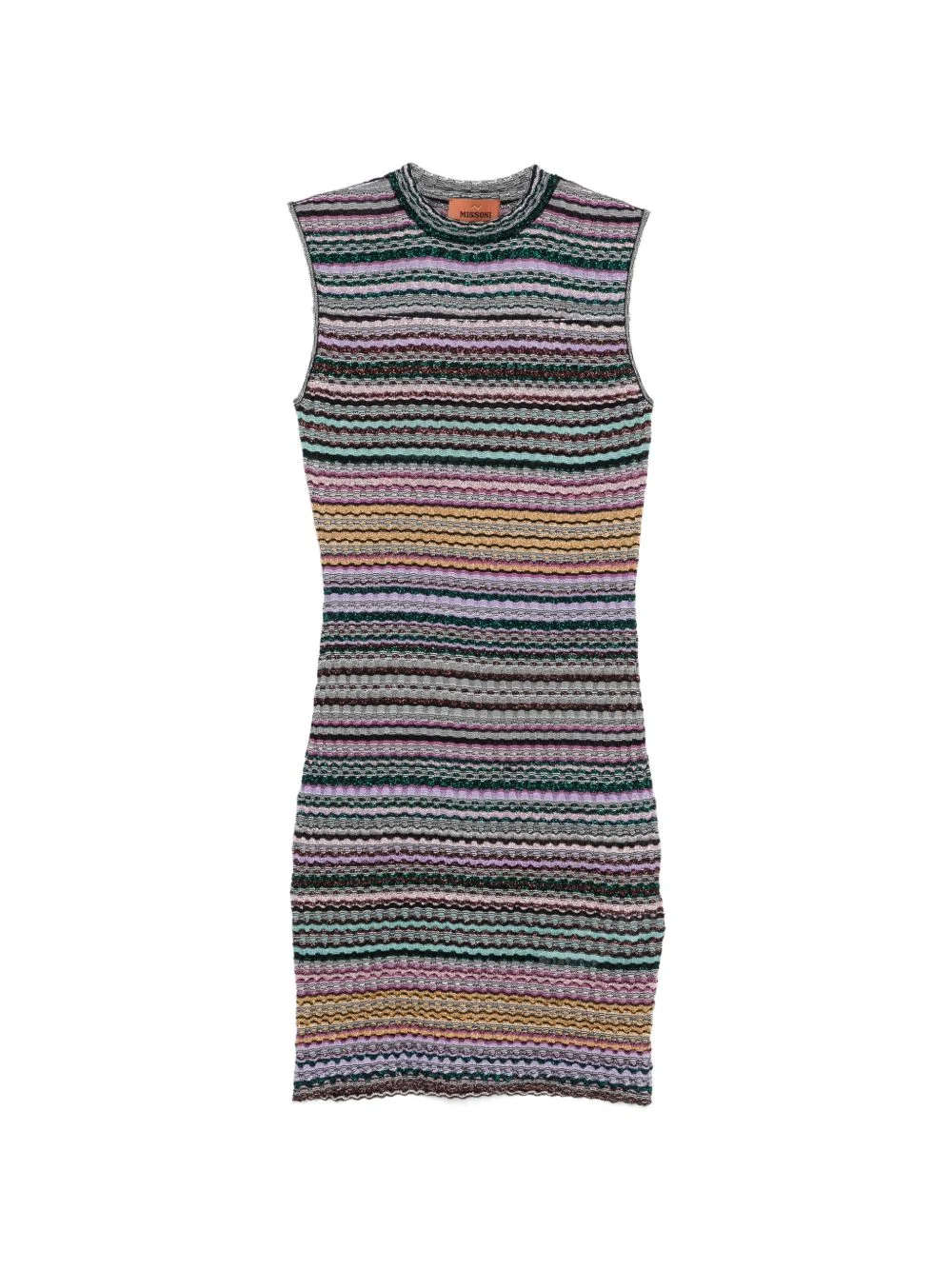 striped-pattern mini dress Highlights - Multicolour - Stripe pattern - Sleeveless - Round neck - The item you receive may differ slightly from the item photographed. this is due to the artisanal nature with which all missoni products are constructed. Imported Composition Viscose 82%, Metallised Fibres 12%, Polyamide 5%, Elastane 1% Washing instructions Dry Clean Only