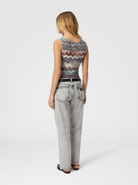 A rounded neckline defines this sleeveless women's top. Made of viscose zigzag knit, the piece features a ribbed striped knit hemline. MORE DETAILS - Sleeveless viscose top - Zigzag pattern - Round neckline - Striped ribbed hem Composition: EXTERNAL:100%Rayon Care instructions: Dry cleaning in tetrachloroethene - mild process ; Ironing maximum temperature 110°C - without steam ; Dry flat ; Do not tumble dry ; Do not wash ; Do not bleach Made in: Italy Product ID DS25WK0OBR012GSM9QW