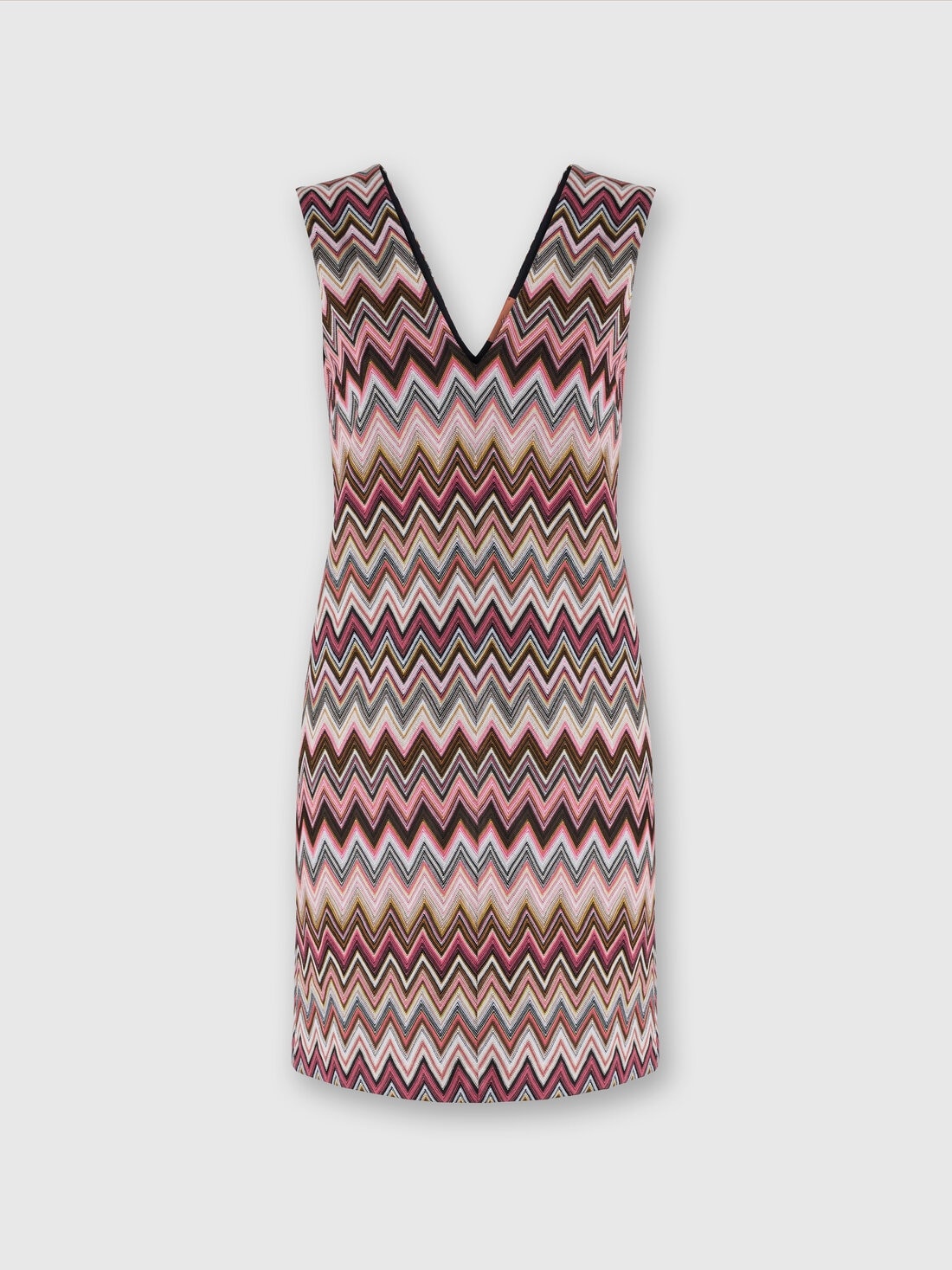 With its seductive V-neck and zigzag game, this sleeveless mini-dress tells the most vibrant essence of Missoni. The cotton and viscose knit adds a touch of comfort without sacrificing refinement, while the zigzag pattern takes center stage, with an elegance that expresses movement and vitality in every thread. MORE DETAILS - Mini-dress - Polo Cut - Iconic zig zg pattern - Cotton and viscose processing Composition: EXTERNAL:52%Cotton, 48%Rayon; INTERNAL REINFORCEMENT:100%Polyester; LINING : 100%Polyester Care instructions: Dry cleaning in tetrachloroethene - mild process ; Do not tumble dry ; Dry flat ; Steam iron only ; Do not wash ; Do not iron ; Do not bleach Made in: Italy Product ID DS25SG1ABR00ZUS91N6