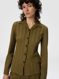 A slim-fit, long-sleeve women’s shirt that embodies Missoni’s iconic style, entirely crafted in the unmistakable zigzag motif through refined raschel workmanship. Made from a cotton blend, it combines tailoring precision and graphic identity in a piece with bold and contemporary character. MORE DETAILS - Slim-fit long-sleeve shirt - Zig zag pattern - Raschel knit - Cotton blend Composition: EXTERNAL:74%Cotton, 26%Rayon Care instructions: Hand wash ; Dry cleaning in tetrachloroethene - mild process ; Dry flat ; Steam iron only ; Do not tumble dry ; Do not iron ; Do not bleach Made in: Italy Product ID DS25WJ01BR012290622
