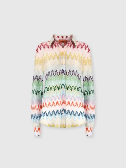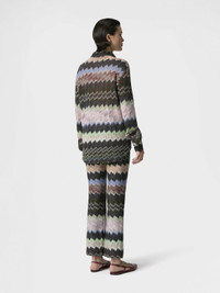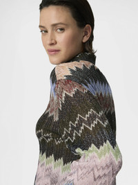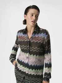 Missoni highlights its artisanal vocation with this women’s shirt in viscose lame, crafted with raschel workmanship featuring a refined snake motif. Long sleeves complete a piece with luminous allure. MORE DETAILS - Women's long-sleeved shirt - Raschel knit with snake pattern - Viscose lame Composition: EXTERNAL:83%Rayon, 17%Metal Fiber Care instructions: Ironing maximum temperature 110°C - without steam ; Hand wash ; Do not tumble dry ; Dry flat ; do not soak ; Do not dry clean ; Cool Hand Wash ; Do not bleach Made in: Italy Product ID DS26SJ0OBR014WSM9YN