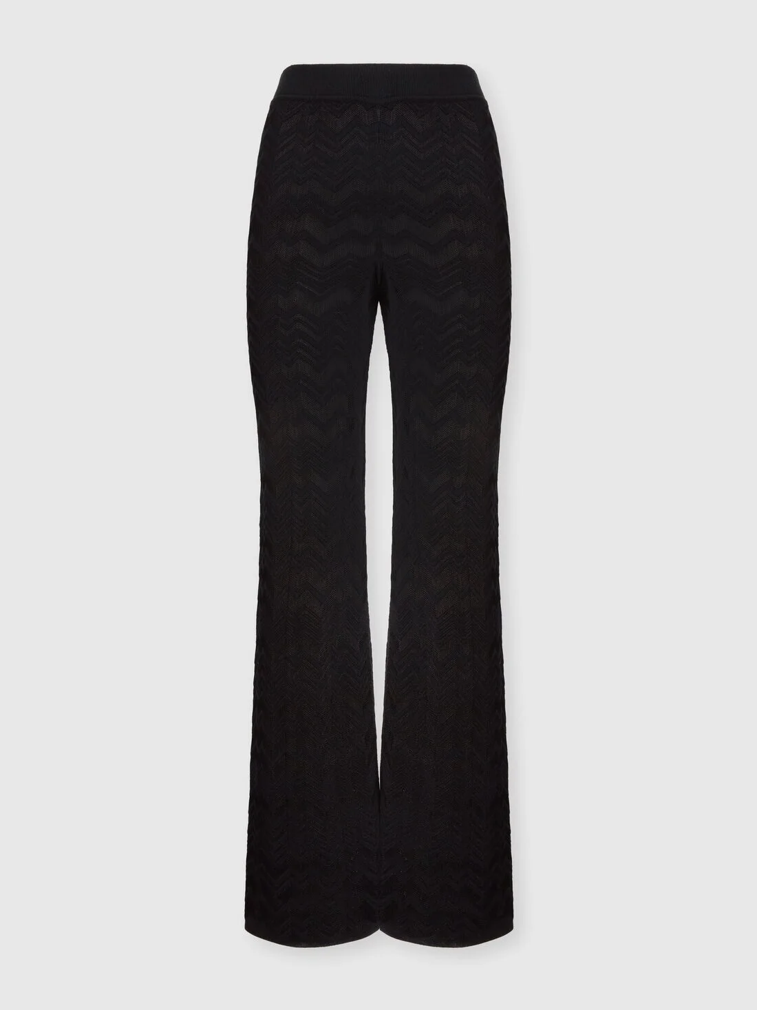 The famous Missoni zigzag is reimagined in an essential style in this long, straight-leg women’s trouser, made in solid color with a tone-on-tone chevron pattern. The wool and viscose mix gives structure and softness to an iconic piece with sober, contemporary style. MORE DETAILS - Straight-leg long pants - Reinterpreted chevron pattern - Wool and viscose blend Composition: EXTERNAL:57%Rayon, 31%Wool, 9%Polyester, 2%Polyamide, 1%Elastane Care instructions: Ironing maximum temperature 110°C - without steam ; Dry cleaning in tetrachloroethene - mild process ; Do not tumble dry ; Dry flat ; Iron inside out ; Do not wash ; Do not bleach Made in: Italy Product ID DS25WI0JBK01CPS91QK