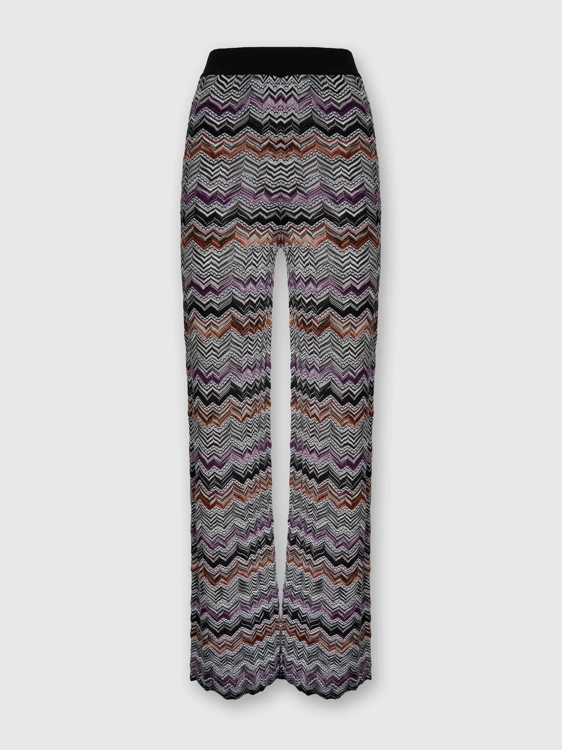A straight-leg long women’s trouser that celebrates the iconic Missoni chevron, reinterpreted in slubbed English rib knit. Made from viscose and cotton blend, it combines a structured texture and graphic movement for a distinctive and contemporary look. MORE DETAILS - Straight-leg long pants - English rib knit with flame chevron - Viscose and cotton blend Composition: EXTERNAL:79%Rayon, 18%Cotton, 2%Polyamide, 1%Elastane Care instructions: Dry cleaning in tetrachloroethene - mild process ; Ironing maximum temperature 110°C - without steam ; Iron inside out ; Do not tumble dry ; Dry flat ; Do not wash ; Do not bleach Made in: Italy Product ID DS25WI0VBK01C6SM9SP