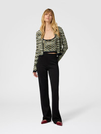 A straight-leg long women’s trouser that combines elegance and brightness thanks to refined vanise workmanship. Made from viscose blend with lame threads, it plays with iridescent reflections and light textures for a sophisticated, contemporary look. MORE DETAILS - Straight-leg long pants - Vanise knit - Viscose blend with lame threads Composition: EXTERNAL:85%Rayon, 13%Metal Fiber, 1%Elastane, 1%Polyamide Care instructions: Ironing maximum temperature 110°C - without steam ; Dry cleaning in tetrachloroethene - mild process ; Dry inside out ; Dry flat ; Do not tumble dry ; Iron inside out ; Iron with a cloth between ; Do not wash ; Do not bleach Made in: Romania Product ID DS25WI00BK01BYL905E