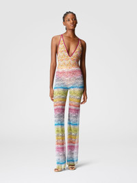 The straight patterned tulle trousers embody the iconic essence of Missoni, combining timeless design with a distinctive touch, while the lightweight tulle is embellished with the zig-zag pattern that creates a lively and sophisticated effect. The high-waisted model enhances the silhouette by offering comfort and modern elegance. MORE DETAILS - Straight Pants - High waist - Tulle Printed - Zigzag pattern Composition: EXTERNAL:93%Polyamide, 7%Elastane Care instructions: Ironing maximum temperature 110°C - without steam ; Dry cleaning in tetrachloroethene ; Do not tumble dry ; Do not wash ; Do not bleach Made in: Italy Product ID MC23SI01BJ00NASM9N2