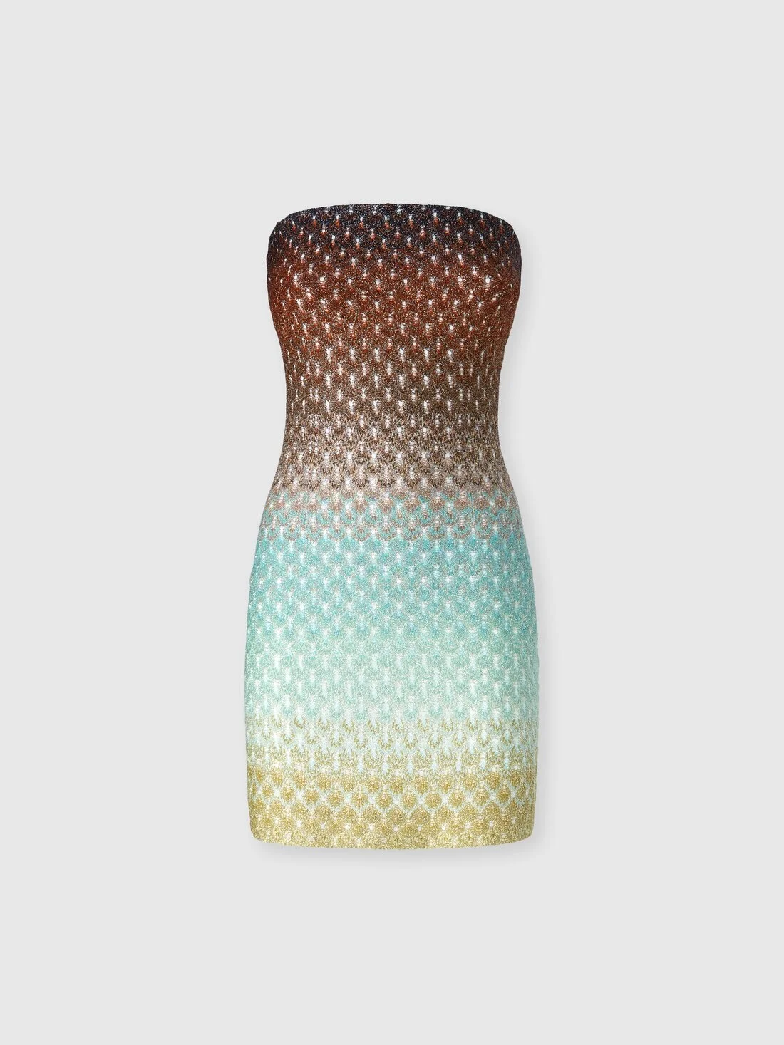 Feminine and refined, this strapless mini dress captivates with its degrade lacework that creates a pleasing visual effect. Perfect for those seeking a bold yet sophisticated look. MORE DETAILS - Women's strapless mini dress - Lace workmanship - Degrade effect Composition: EXTERNAL:82%Rayon, 18%Metal Fiber; INTERNAL REINFORCEMENT:100%Polyester Care instructions: Dry cleaning in tetrachloroethene - mild process ; Do not tumble dry ; Dry flat ; Steam iron only ; Do not wash ; Do not iron ; Do not bleach Made in: Italy Product ID DS25SG41BR0134S6154