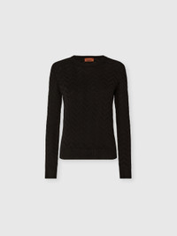 A piece that blends style and comfort: this women’s crew-neck pullover in stretch cotton and viscose blend is brought to life by the solid-color chevron motif, adding rhythm and depth to the knit. Long sleeves and a relaxed fit complete this refined design, signed Missoni. MORE DETAILS - Women's stretch crewneck pullover - Long sleeves - Cotton and viscose blend - Tone-on-tone chevron pattern Composition: EXTERNAL:52%Cotton, 46%Rayon, 1%Elastane, 1%Polyamide Care instructions: Hand wash ; Ironing maximum temperature 110°C - without steam ; Dry cleaning in tetrachloroethene ; Do not tumble dry ; Dry flat ; Do not bleach Made in: Tunisia Product ID DC26SN00BK01H2S91RY