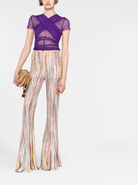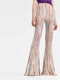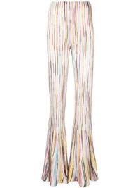 stripe-pattern semi-sheer flared trousers Highlights - White/multicolour - Stretch-design - Semi-sheer construction - Artist stripe pattern - Floor-length - The item you receive may differ slightly from the item photographed. this is due to the artisanal nature with which all missoni products are constructed. Made in Italy Composition Lining: Silk 96%, Spandex/Elastane 4% Outer: Viscose 90%, Polyester 8%, Polyamide 2% SIZE & FIT Model measurements Height 5 ft 10 in(1.78 m) Bust/Chest 31.49 in(80 cm) Hips 33.85 in(86 cm) Waist 24.01 in(61 cm) Measurement INSIDE LEG 30.7 in(78 cm) HIPS 33.85 in(86 cm) WAIST 21.25 in(54 cm) FittingInformation This piece fits true to size. We recommend you get your regular size Designed to be fitted at the waist and through the thigh, loose from the knee Made with a mid-weight stretch fabric Washing instructions Machine Wash