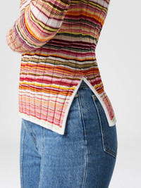 With its ribbed knitting, this striped crewneck sweater in cotton and viscose is a perfect example of Missoni's everyday elegance. The long sleeves and clean design reflect the house's attention to detail, for a versatile and impeccable garment, suitable for any occasion. MORE DETAILS - Ribbed sweater - Cotton & Visscose - Striped pattern Composition: EXTERNAL:72%Cotton, 28%Rayon Care instructions: Ironing maximum temperature 110°C - without steam ; Dry cleaning in tetrachloroethene - mild process ; Do not tumble dry ; Iron inside out ; Dry flat ; Do not wash ; Do not bleach Made in: Romania Product ID DS25SN04BK041YSM9M7