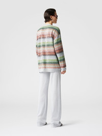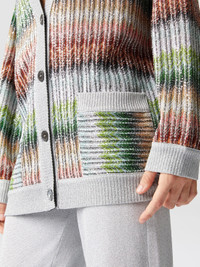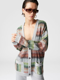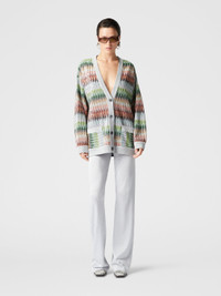 This oversized V-neck and button-down cardigan is defined by a degrade zigzag pattern embellished with sequins. The front pockets and the textured Caperdoni workmanship complete a garment that combines comfort and style, giving a relaxed yet sophisticated allure. MORE DETAILS - Oversized Cardigan - V-neck - Degrade zig zag pattern - Decorative Sequins - Carpedoni processing Composition: EXTERNAL:47%Rayon, 26%Polyamide, 20%Polyester, 7%Metal Fiber; INTERNAL REINFORCEMENT:100%Polyester Care instructions: Hand wash ; Dry cleaning in tetrachloroethene - mild process ; Steam iron only ; COOL HAND WASH ; Dry flat ; Do not tumble dry ; Do not iron ; Do not bleach Made in: Tunisia Product ID DS25SM0IBC0051SM9KP