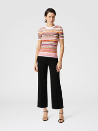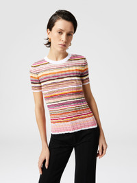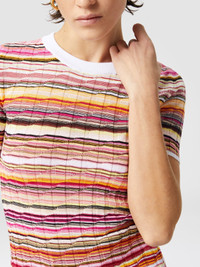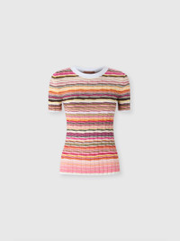 Missoni reinterprets simplicity with this striped cotton and viscose ribbed sweater with three-quarter sleeves. A design that combines practicality with the innate class of the maison, for a garment that enhances craftsmanship and attention to quality in every detail. MORE DETAILS - Ribbed sweater - Cotton & Viscose - Striped pattern - Sleeves Composition: EXTERNAL:68%Cotton, 32%Rayon Care instructions: Ironing maximum temperature 110°C - without steam ; Dry cleaning in tetrachloroethene - mild process ; Do not tumble dry ; Dry flat ; Iron inside out ; Do not wash ; Do not bleach Made in: Romania Product ID DS25SN05BK041YSM9M7