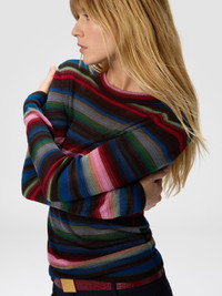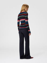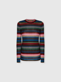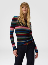 A contemporary reinterpretation of knitwear, designed for those who value both simplicity and personality. This women’s crewneck sweater is crafted in a wool-viscose blend. Its fluid construction reflects Missoni’s craftsmanship, resulting in a piece that fuses comfort, style, and identity into a clean, graphic statement. MORE DETAILS - Women's long sleeve crewneck sweater - Striped pattern - Wool and viscose blend Composition: EXTERNAL:80%Rayon, 20%Wool Care instructions: Hand wash ; Ironing maximum temperature 110°C - without steam ; Wash in net bag ; Dry cleaning in tetrachloroethene ; Dry flat ; Do not tumble dry ; Reshape when damp ; Wash separately ; Do not bleach Made in: Romania Product ID DS25WN2SBK01G0SM9WH