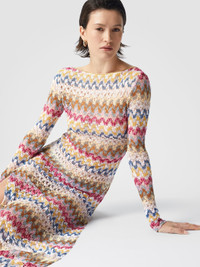 The long dress in lame viscose lace by Missoni stands out for its sophisticated elegance and craftsmanship. The zigzag pattern, illuminated by lame, gives the garment a luminous and dynamic effect, while the fluid and light silhouette envelops the figure with grace. The most seductive detail is the open back, which adds a sensual and refined touch. MORE DETAILS - Long dress - Lame viscose lace - Backless - Zigzag pattern Composition: EXTERNAL:95%Rayon, 5%Metal Fiber Care instructions: Ironing maximum temperature 110°C - without steam ; Dry cleaning in tetrachloroethene ; Do not tumble dry ; Do not wash ; Do not bleach Made in: Italy Product ID MS25SQ14BR0000S01FQ