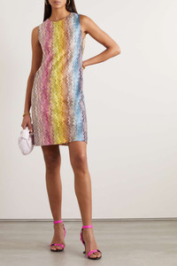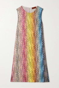 EDITORS'NOTES Missoni's kaleidoscopic knits are like works of art. This mini dress is made with multicolored yarns in a stepped, striped pattern and cut in an elegant A-line silhouette. Style yours with simple accessories. SIZE & FIT - Fits true to size, take your normal size - Designed to be slightly fitted at the bust and waist, loose at the hip - Lightweight knit - Model is 177cm/ 5'10" and is wearing an IT 40 DETAILS & CARE - Multicolored viscose - Button-fastening keyhole at back - 100% viscose; lining: 100% polyester - Dry clean
