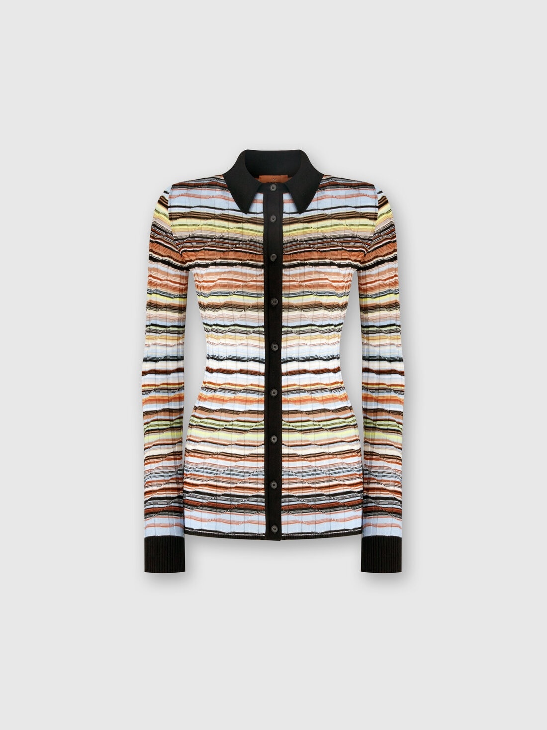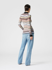 Striped cotton and viscose ribbed shirt with contrasting trim