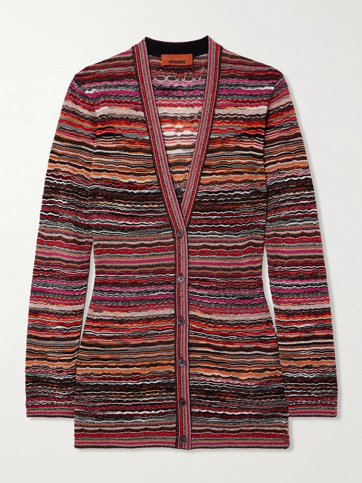 Missoni's striped cardigan stays true to the brand's design codes. It's crochet-knitted in a kaleidoscope of colors and flecked with metallic threads that catch the light. Underpin yours with a simple tank or turtleneck.