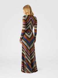 This flared long women’s dress with deep V-neck and long sleeves is a tribute to sculpted femininity. Crafted from exquisite perforated lace tulle with lame threads, it features strategically placed seams that enhance the silhouette with elegance. The viscose-blend composition adds fluidity and luminosity, while the tailored craftsmanship reveals the garment’s sophisticated and deeply distinctive design. MORE DETAILS - Flared long dress - V-neckline - Raschel knit with perforated lace tulle - Lurex threads - Viscose blend - Waist seams Composition: EXTERNAL:91%Rayon, 9%Metal Fiber; LINING : 82%Polyester, 18%Elastane Care instructions: Dry cleaning in tetrachloroethene - mild process ; Ironing maximum temperature 110°C - without steam ; Do not tumble dry ; Dry flat ; Do not wash ; Do not bleach Made in: Italy Product ID DS25WG20BR012OS72LE