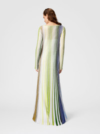 A long dress that expresses the artisanal elegance of Missoni, characterized by partialized stripes enriched with bright sequins. The long sleeves give a sophisticated touch, creating a play of light that makes the garment ideal for the most refined occasions. MORE DETAILS - Partial long dress - Striped pattern - Decorative Sequins - Sleeves Composition: EXTERNAL:73%Rayon, 10%Polyamide, 8%Metal Fiber, 8%Polyester, 1%Elastane Care instructions: Ironing maximum temperature 110°C - without steam ; Dry cleaning in tetrachloroethene - mild process ; Dry inside out ; Do not tumble dry ; Dry flat ; Iron inside out ; Do not wash ; Do not bleach Made in: Italy Product ID DS25SG06BK042DSM9N9