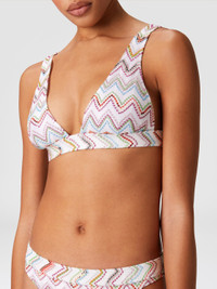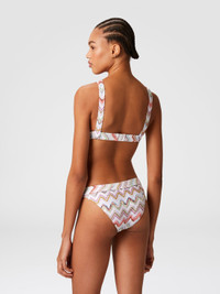 Bikini with the iconic zigzag motif of the Missoni maison in a 3D variant, illuminated by the metallic reflections conferred by lame and embellished with raschel workmanship. The drawstring briefs offer a custom fit while the design maintains the balance between aesthetics and comfort, for an iconic and functional style. MORE DETAILS - 3D Zig Zag Pattern - Raschel lame processing - Briefs with laces Composition: EXTERNAL:61%Rayon, 30%Polyester, 9%Metal Fiber; LINING : 80%Polyamide, 20%Elastane Care instructions: Hand wash ; Do not tumble dry ; Do not dry clean ; Do not iron ; Do not bleach Made in: Italy Product ID MC22SP02BR0101SM9KZ