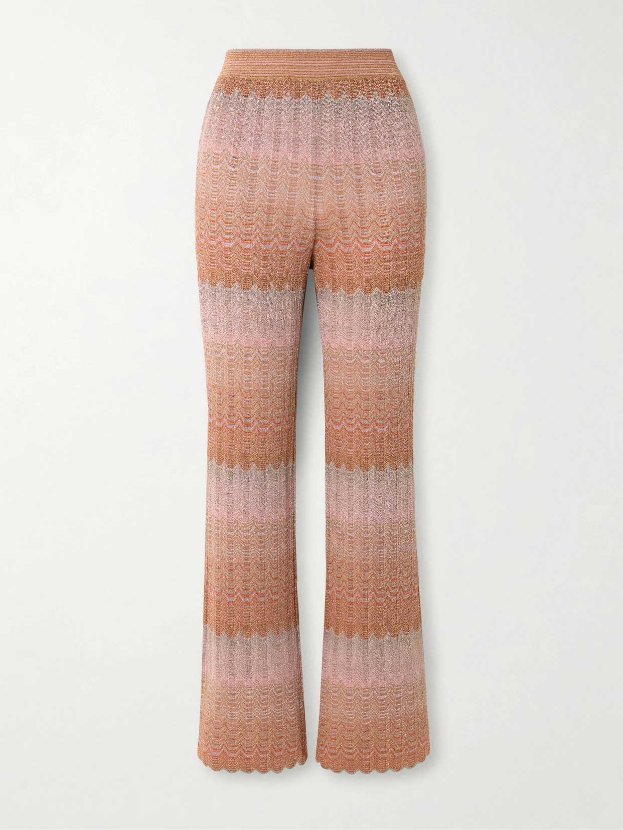 Missoni's pants are crochet-knitted with multicolored zig zags, a signature style of the Italian house since the '60s. Flecked with metallic threads for a hint of sparkle, they sit high on the waist and fall to straight legs.