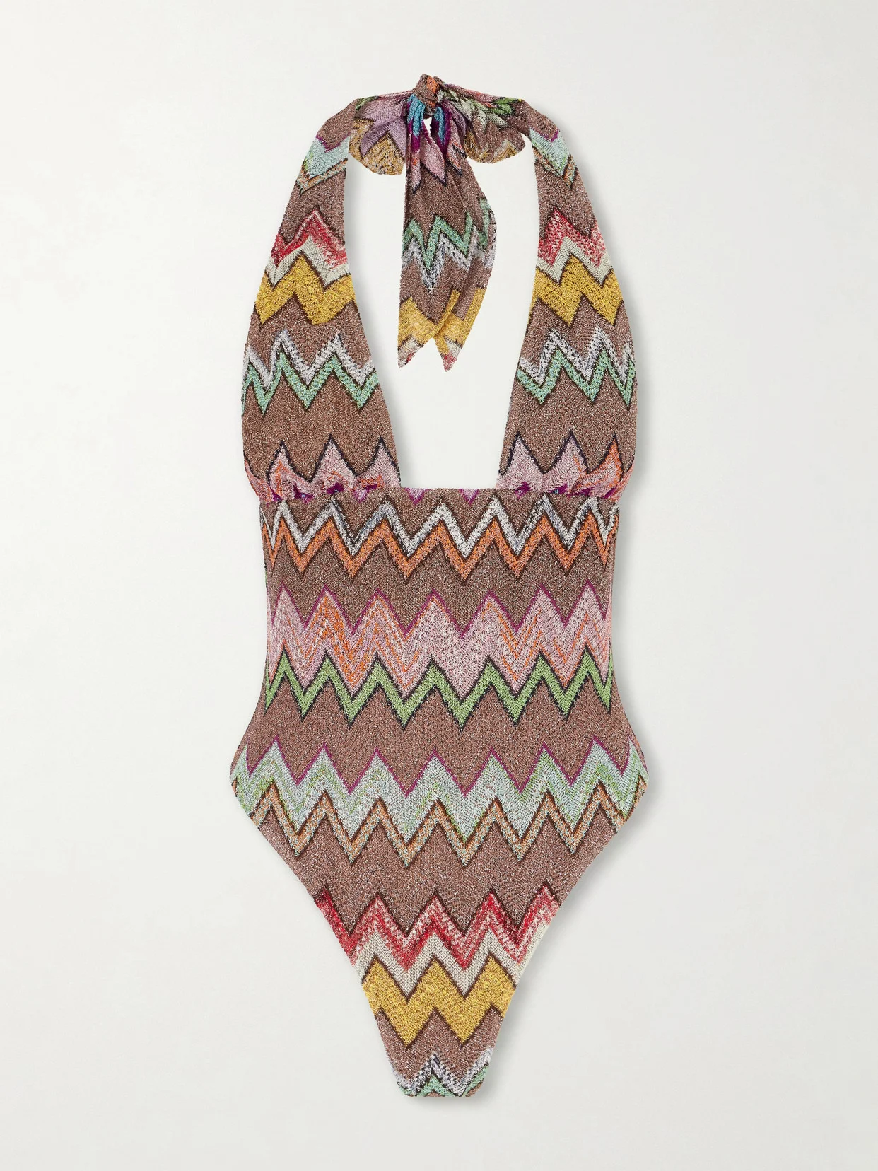 If you're after memorable vacation pictures, Missoni's crochet-knit swimsuit will do the trick. It has a dramatic plunge design with halterneck ties for support.
