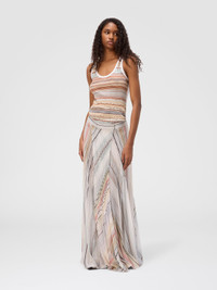 With its fluid construction and wrap-around cut, this women’s pleated long skirt in smooth striped knit reinterprets classic style through a contemporary lens. Made in a viscose blend with lame threads, it plays with light through the discreet brilliance of the yarn. Fine pleats move gracefully, drawing a dynamic and sophisticated silhouette. MORE DETAILS - Wrap skirt for women - Pleated plain striped knit - Viscose and lame filament blend Composition: EXTERNAL:59%Rayon, 37%Polyester, 4%Metal Fiber; LINING : 82%Polyester, 18%Elastane Care instructions: Hand wash ; Ironing maximum temperature 110°C - without steam ; Wash inside out ; Wash in net bag ; Dry cleaning in tetrachloroethene ; Do not tumble dry ; Do not dry clean ; Wash separately ; Reshape when damp ; Do not wash ; Do not bleach Made in: Italy Product ID DS25WH11BK01F8SM9WF