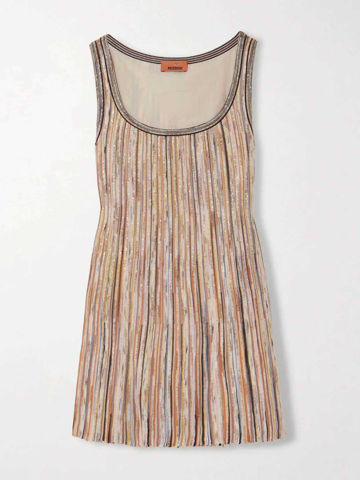 Missoni's mini dress twinkles with metallic threads and tiny scattered sequins. It's been rib-knitted on the Italian brand's signature looms and lined for coverage.