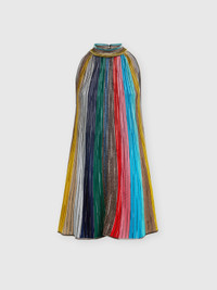 Sleeveless mini-dress in lamé pleated knit