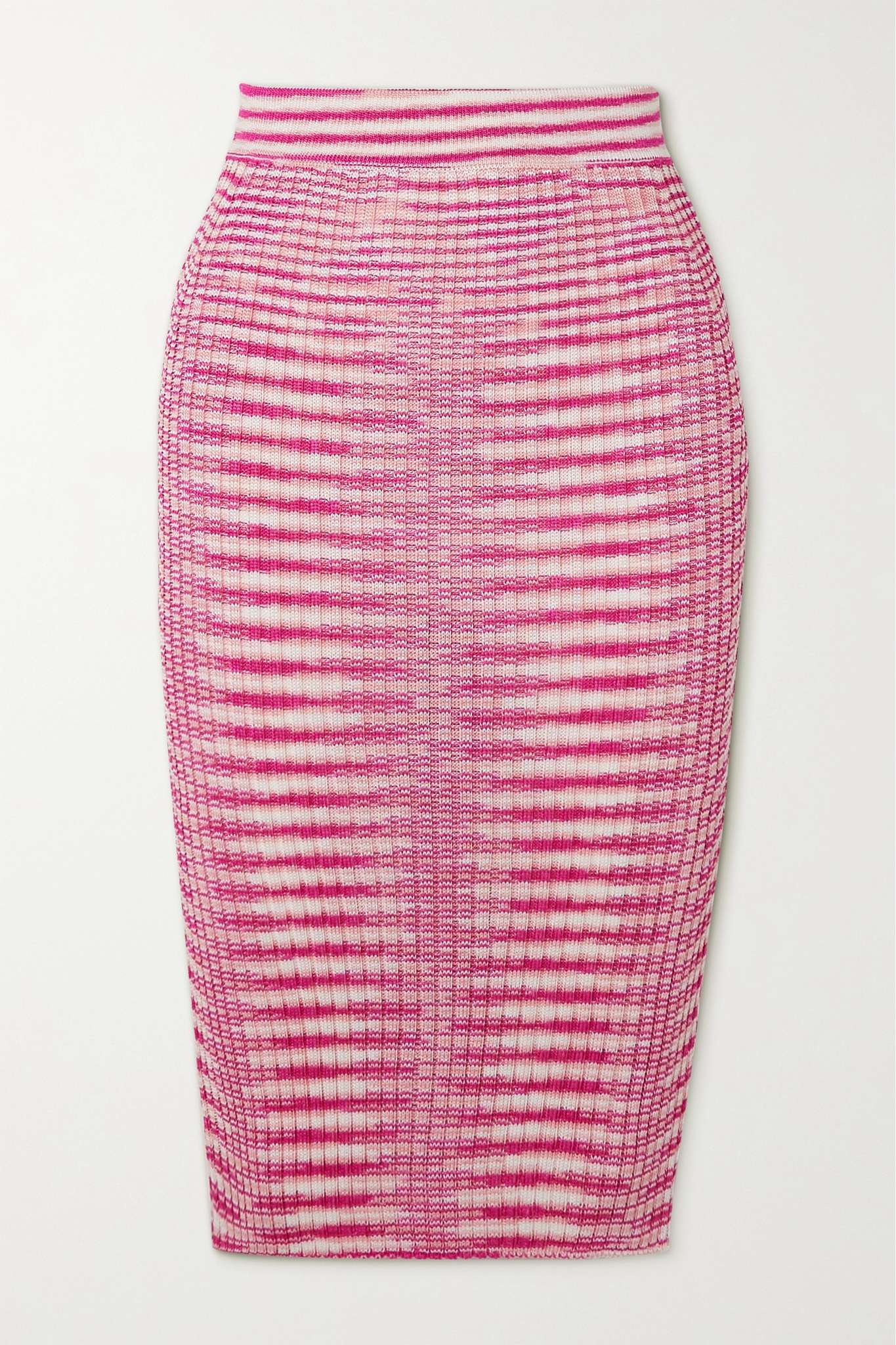 EDITORS'NOTES Missoni is famed for its multicolored knits - this midi skirt is patterned with mesmerizing tonal pink and white stripes. Style yours with a shirt and heels. SIZE & FIT - Fits true to size, take your normal size - Midi-length, designed to be worn at the waist - Mid-weight knit - Model is 177cm/ 5'10" and is wearing an IT 40 DETAILS & CARE - Fuchsia, light-pink and white stretch-knit - Slips on - 65% viscose, 35% polyamide - Dry clean