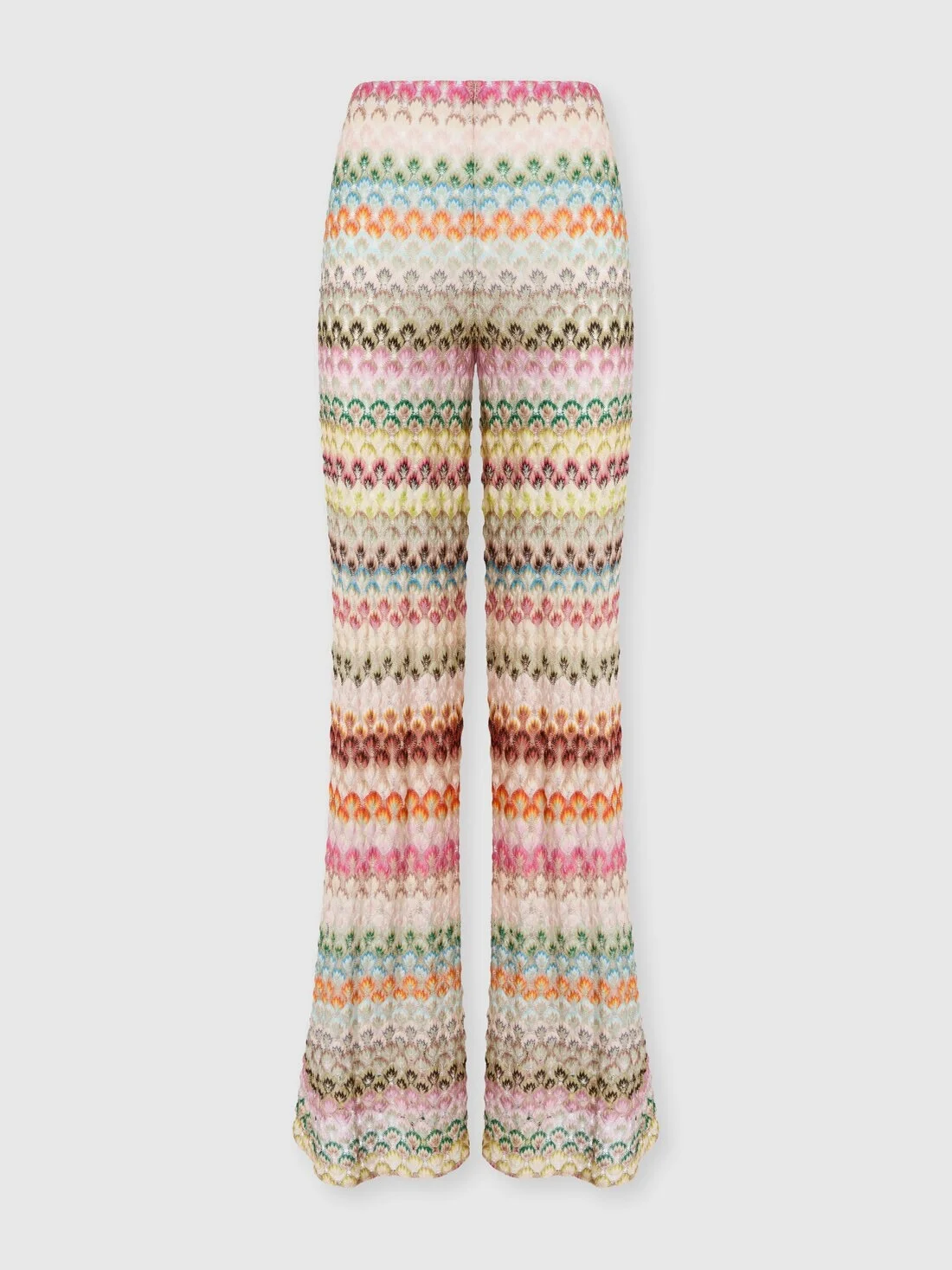 Made from Raschel fabric, the palazzo pants stand out for their lacework, which adds depth and character to the piece. A blend of modernity and tradition, this design embodies Missoni's distinctive style. MORE DETAILS - Women's palazzo pants - Wide leg - Lace workmanship Composition: EXTERNAL:100%Rayon; LINING : 77%Polyamide, 23%Elastane Care instructions: Dry cleaning in tetrachloroethene - mild process ; Do not tumble dry ; Dry flat ; Steam iron only ; Do not wash ; Do not iron ; Do not bleach Made in: Italy Product ID DS25SI0MBR0133S6153