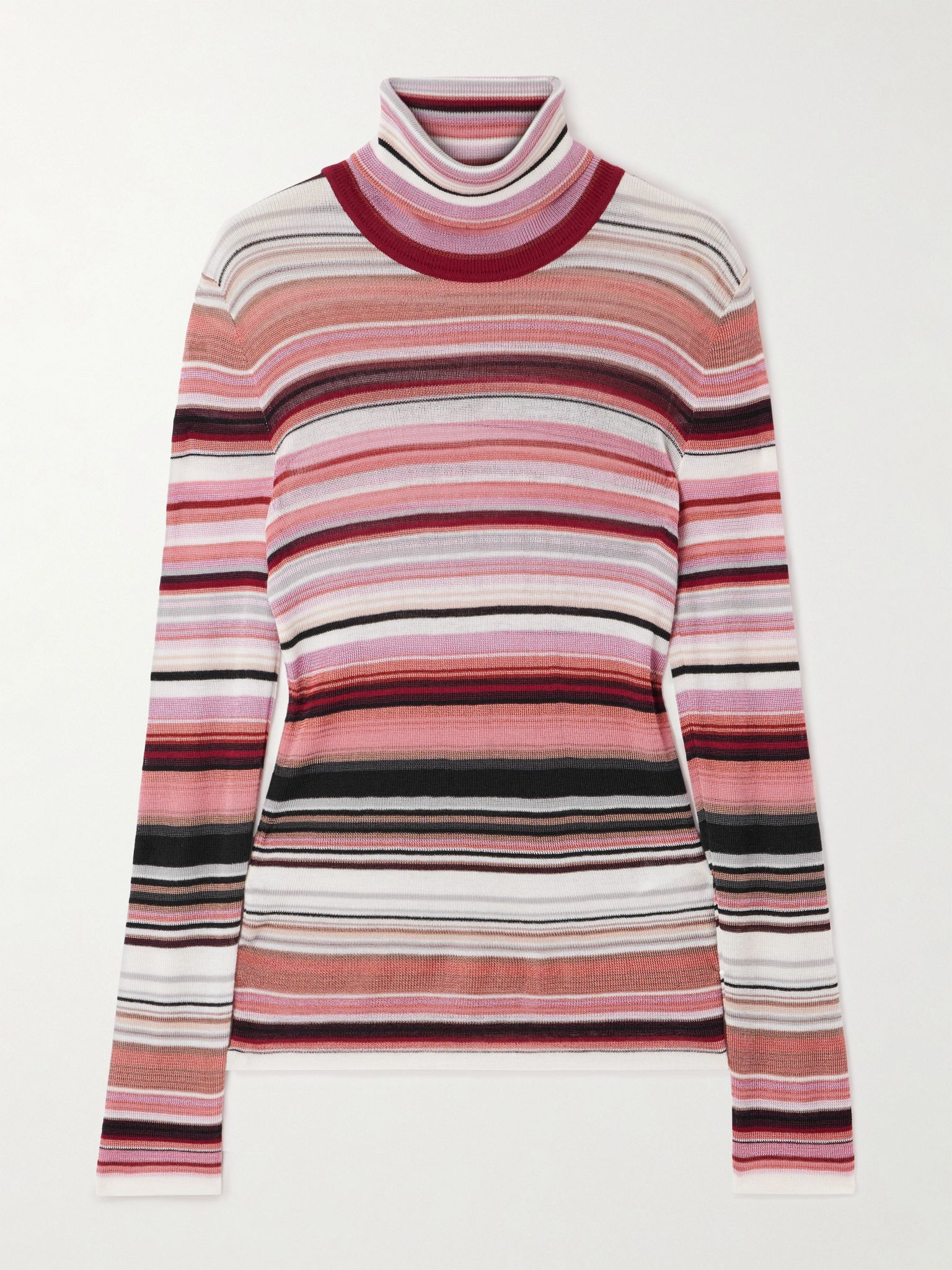 Artful and off-beat, Missoni's way with color is so distinctive. This turtleneck sweater is finely knitted with stripes - it has a smooth, light texture that layers well under slim jackets. Size & Fit - Fits true to size, take your normal size - Designed for a close fit - Lightweight knit - Model is 177cm/ 5'10" and is wearing an IT 40 Model measurements: - Bust: 85cm/ 33.5" - Waist: 65cm/ 25.5" - Hip: 91cm/ 36" Details & Care - Multicolored viscose and wool-blend - Slips on - 59% viscose, 41% wool - Dry clean