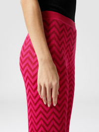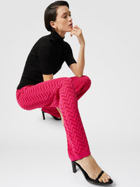 These straight jacquard trousers with a tonal chevron pattern embody the essence of Missoni's heritage. The minimalist design is combined with the practicality of the elastic waistband, ensuring comfort without compromising the intrinsic elegance of the worked fabric. MORE DETAILS - Straight Pants - Tonal chevron pattern - Jacquard workmanship - Elastic waistband Composition: EXTERNAL:65%Cotton, 33%Rayon, 1%Elastane, 1%Polyamide Care instructions: Ironing maximum temperature 110°C - without steam ; Dry cleaning in tetrachloroethene - mild process ; Iron inside out ; Do not tumble dry ; Dry flat ; Dry inside out ; Do not wash ; Do not bleach Made in: Italy Product ID DS25SI05BK044U72036