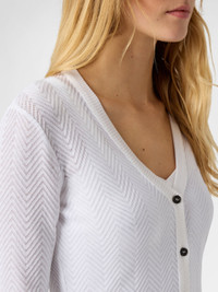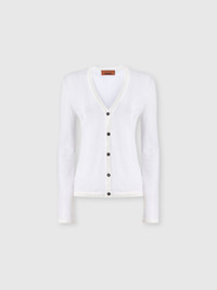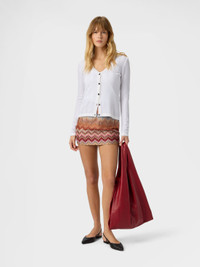 A women’s cardigan that celebrates Missoni’s knitwear mastery. Made from a cotton blend with raschel workmanship, it features a tone-on-tone zigzag motif that gives the fabric depth and movement. The V-neckline with buttons and patch pockets complete an essential design, made unique by the maison’s distinctive stylistic signature. MORE DETAILS - Women's V-neck cardigan - Front buttons and pockets - Raschel knit - Tone-on-tone zigzag pattern - Cotton blend Composition: EXTERNAL:75%Cotton, 25%Rayon Care instructions: Dry cleaning in tetrachloroethene - mild process ; Ironing maximum temperature 110°C - without steam ; Do not tumble dry ; Dry flat ; Do not wash ; Do not bleach Made in: Italy Product ID DC26SM00BR012214001